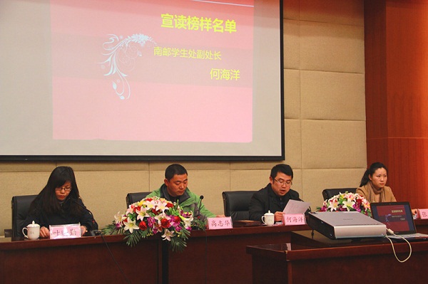 大会首先由何海洋老师宣读受表彰的集体和个人名单,并由领导为获奖者颁奖。随后榜样代表依次上台发言,研究生代表科研榜样朱捷同学、本科生代表学习榜样华桢宇同学和优秀集体国防生代表张建同学分别从科研、学习、社会工作等方面和大家分享了自己的心得和经验,让在座的同学深受感染,赢得了他们的阵阵掌声。最后,公司党委副书记高志华老师借助榜样的力量向全体同学提出了三点希望:希望全体同学以榜样为标杆,积极进取,争先赶超,在全院范围内掀起“学先进、赶先进”的新高潮;希望同学们既要树立远大的人生理想,同时又要注意培养脚踏实地的生活作风;希望大家树立大局意识,增强社会责任感。