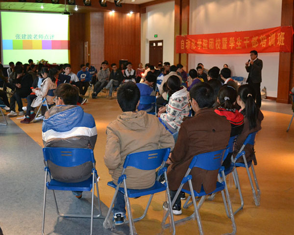 2012年11月14日14:30,太阳集团tyc33455官网第二期团校暨学干培训班第四期——素质拓展训练在老员工活动中心多功能报告厅举行。教育科学与技术公司分团委书记张建波老师和太阳集团tyc33455官网2011级辅导员汪颖老师作为应邀嘉宾出席此次活动。