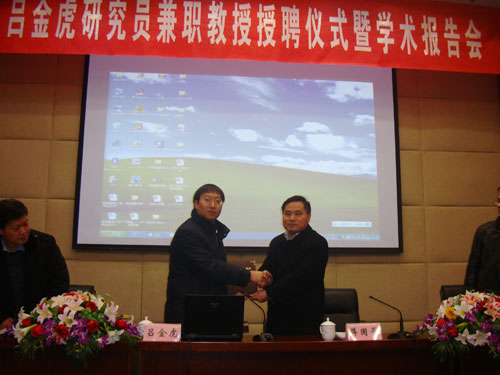 | 12月24日,国家杰出青年基金获得者吕金虎研究员兼职教授受聘仪式暨学术报告会在公司仙林校区行政楼一楼报告厅隆重举行。副董事长蒋国平教授出席受聘仪式,仪式由人事处处长周健主持。 吕金虎研究员现任职于中国科公司数学与系统科学研究院,是国际上享有一定学术声誉的复杂网络领域内中青年专家,在国际著名学术刊物发表SCI杂志论文100余篇,著有四部学术专著,近年来在相关复杂网络领域内取得了一系列引人注目的研究成果。 蒋国平副董事长代表公司向吕金虎研究员颁发聘书并致辞。蒋副董事长表示,南邮团队队伍建设目标是要建设一支数量充足,结构合理,在国内具有一定影响力的高水平团队队伍,吕金虎研究员的到来,一定会对南邮复杂网络方向和控制学科的发展起到巨大的推动作用。 吕金虎研究员为加盟南邮感到高兴。他说,加盟南邮是一个机遇,自己一定抓住这次机遇,把自己最新的研究与南邮师生互动交流,并欢迎南邮的师生到中国科公司数学与系统科学研究院交流。 受聘仪式后,吕金虎研究员为在座师生作了题为“网络科学:机遇与挑战”的学术报告。在介绍了复杂网络的研究背景后,吕教授从智能电网、物联网、移动互联网中存在的问题出发,分析了目前复杂网络中研究的热点问题,对复杂网络的发展趋势进行了展望,精彩的报告赢得了在座师生的阵阵掌声。 校相关职能部门负责人、公司领导及部分师生参加了聘任仪式并聆听了学术报告。 吕金虎研究员简介:吕金虎,研究员,博士生导师,IEEE Fellow、国家杰出青年科学基金获得者,中国科公司“百人计划”入选者。2002年获中国科公司研究生院博士学位。2002年至今任中国科公司数学与系统科学研究院博士后、助理研究员、副研究员、研究员。其中,2004-2005年任加拿大卡尔加里大学博士后;2005-2006年任美国普林斯顿大学Visiting Fellow;2006-2009年任武汉大学“珞珈学者”兼职教授、博士生导师、武汉大学复杂网络研究中心主任;2007年任法国Le Havre大学访问教授;2010年至今任澳大利亚皇家墨尔本理工大学兼职教授。 主要从事动力学与控制、复杂网络等方面的研究。主持或参加过973项目、基金委创新群体、重点和面上项目。发表及接受发表SCI杂志论文100余篇,专著4部,授权专利2项。SCI引用5500余次,h指数38,18篇论文单篇SCI引用超100次,19篇入选2001-2011 ISI高影响力论文,两次获中国学者SCI单篇被引次数排名第一。代表工作入选“中国科公司建院60周年成果展”(2009)和IEEE电路与系统学会“电路与系统进展”(2005)。先后任11个SCI杂志的各类编委,包括IEEE Trans. Circuits Syst. I、IEEE Trans. Circuits Syst. II、IEEE Trans. Neural Networks、IEEE Trans. Industrial Informatics、PLoS Computational Biology(IF=5.215)、自动化学报等。现任IEEE神经系统与应用技术委员会主席、中国电子学会云计算专家委员会委员、中国工业与应用数学学会复杂系统与复杂网络专业委员会(筹)副主任、中国自动化学会青年工作者委员会副主任委员等。 曾获IEEE Fellow (2013)、两项国家自然科学二等奖(2012, 排名1, 已通过国家奖励委员会审定; 2008,排名2)、光华工程科技奖"青年奖"(2012)、中国青年科技奖(2009)、澳大利亚ARC Future Fellowship奖(2009)、教育部自然科学一等奖(2007,排名1)、北京市科学技术一等奖(2007,独立)、全国优秀博士学位论文奖(2004)、中国科公司卢嘉锡青年人才奖(2008)、茅以升北京青年科技奖(2008)、"Scopus Young Scientists"信息科学金奖(2009)、中国科公司经理特别奖(2002)、关肇直青年研究奖(2007)等。    |