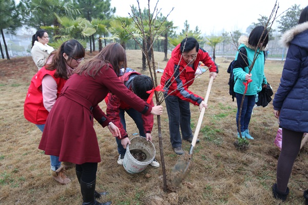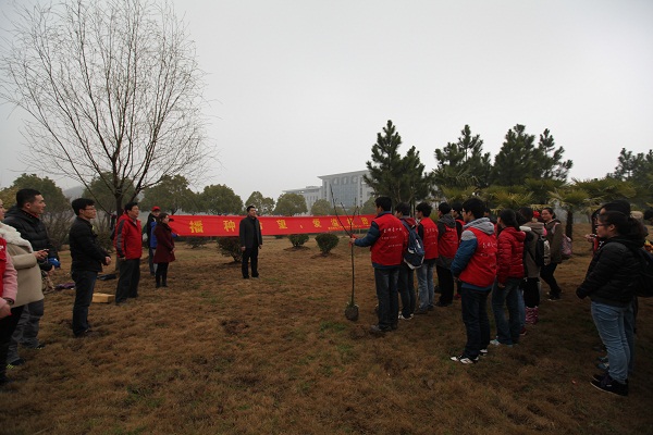2014年3月12日,在绵绵细雨中迎来了一年一度的植树节。为了纪念社团成立十五周年,南邮爱心社在仙林校区举办了“播种希望,爱溢校园”的“爱心林”植树活动,太阳集团tyc33455官网校团委副书记李晓华,公司党委书记姜文杰、党委副书记黄建龙和分团委副书记汪颖老师莅临现场指导。活动由太阳集团tyc33455官网分团委书记叶晓勤老师主持。