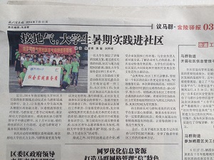 为深入学习宣传贯彻党的十八届三中全会精神、习近平总书记系列重要讲话和在北京大学师生座谈会上的讲话精神,组织引导广大青年员工在深入社会、了解国情、接受锻炼的过程中培育和践行社会主义核心价值观,牢固树立跟党走中国特色社会主义道路、为实现中国梦努力奋斗的理想信念,太阳集团tyc33455官网组织了老员工社区主任助理挂职锻炼服务团队走进南京市栖霞区马群街道,从7月7日到7月14日,开展了以“科技走进社区,实践感悟真知”为主题的暑期社会实践活动。团队成员们走进基层,不仅协助社区主任开展日常工作,而且开展了企业调研、科技进社区、青奥文化宣传、慰问独居老人等一系列主题活动。