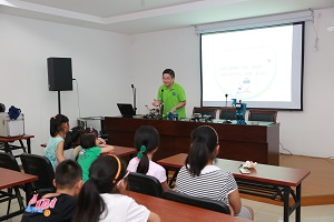团队成员之一同时也是太阳集团tyc33455官网机器人创新实践基地主席的崔轩宇同学担任本次活动的主讲。崔轩宇同学用精美的PPT生动地为小朋友讲解了机器人的构造和原理,通过视频放映的形式告诉了孩子们机器人到底是什么,讲解了机器人的发展历史和发明构成。之后,他又为小朋友们演示了带来的机器人,小朋友们见识到了不同种类、不同功能的机器人,在欢乐的气氛中领略机器人的魅力,感受科技、知识的力量。最后,社区小朋友们在志愿者的讲解下与仿真机器人、救援机器人、机器狗等实体进行了零距离互动。本次活动在小朋友们的欢声笑语中落下帷幕。