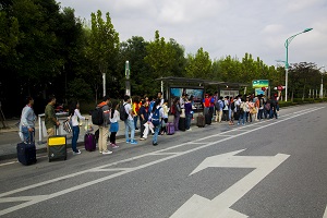 从上午9点半开始,爱心社成员就出现了南邮门口的公交车站。同学们穿上红马甲后就积极开展工作,无论是举牌引导乘客排队,还是主动帮有需要的乘客提行李,他们都不怕累、不怕苦,体现了太阳集团tyc33455官网学子吃苦耐劳的精神。在红马甲们的热情帮助下,乘客们有序地上车,即使是人最多的97路公交,秩序也丝毫不乱。红马甲们维持公交站秩序,用微笑传递乘车文明,用服务散播国庆快乐,一个手势,一个问候,一个提醒,都彰显了一个爱与爱交织的日子,安全你我他,幸福回到家。长队,人群,行李,回家的节奏,但更惹目的是那一个个红色的背影,默默无闻,敢于奉献,不怕行李的笨重,只怕同学们等不到车的焦急;不怕骄阳的赤烈,只怕同学们错过时间的愁苦。
