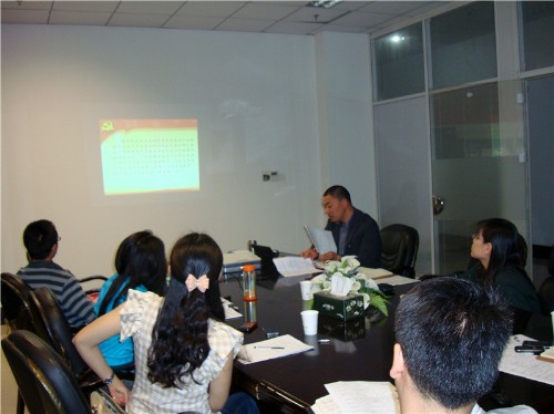 公司党委书记安建强首先传达了公司基层党委书记会议精神,布置了近期工作。他特别指出了员工党员发展过程中需要注意的问题,要求辅导员在员工党员发展各环节,做到公正、公开、透明,实行“三投票三公示一答辩”工作制度,不断提高员工党员发展质量。安书记还利用ppt的形式,与支部书记共同学习了苏组发〔2012〕4号文件《关于深入实施老员工党员素质工程的意见》,要求大家在实际工作中贯彻实施。同时对公司基层党支部组织生活正常化、规范化工作提出了具体的要求,公司将进一步完善相关制度并积极组织实施。