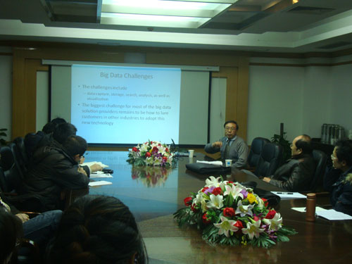 Yu-Chu Tian教授首先结合当前IT技术发展的前沿,通过具体的应用介绍了大数据的定义、特点和研究紧迫性。深入的分析了大数据处理研究所面临的关键技术问题和挑战,尤其是现代企业对大数据技术的认知度问题。结合生物信息处理当中的多输入多输出模型,分析介绍了云计算以及其所提供的不同层次的服务,并对大数据处理与云计算的关系进行了阐述。最后,对其目前所开展实施的澳大利亚最为先进的大数据实验室组建以及相关研究成果进行了介绍,展示了大数据处理和云计算在数据处理、存储、以及服务等方面所具备的技术先进性。报告会极大地扩展了与会师生在大数据以及云计算方面的视野,会后的讨论及提问十分热烈,Yu-Chu Tian教授也热情解答了老师和同学们的提问。主讲嘉宾简介:Yu-Chu Tian教授,计算机科学家,系统与网络领域澳大利亚研究理事会国际专家,澳大利亚昆士兰科技大学计算机网络与通讯系主任。1993年于浙江大学获得工业自动化博士学位,2009年获得悉尼大学计算机和软件工程博士学位,1987年加入海军工程公司任讲师,1994年-1998年任浙江大学副教授,1996年-1998年香港科技大学访问学者,1998年加入澳大利亚科廷科技大学任Research Fellow,2000年入选4位西澳大利亚战略研究员之一,自2002年以来,入职澳大利亚昆士兰科技大学,历任讲师、高级讲师、副教授,目前担任教授、系主任,2007年成为马里兰大学计算机科学系客座教授。Yu-Chu Tian教授共发表了148篇论文,h指数达到20,获专利1项,研究领域包括:复杂系统工程、智能系统、实时计算和嵌入式系统、计算机网络和无线通讯、大数据处理、分布式云计算以及控制理论和工程。Yu-Chu Tian教授组建了昆士兰科技大学计算机网络与通讯系,领导建立了澳大利亚第一个大数据实验室,承担了数个大型ARC和CRCs研究计划。Yu-Chu Tian教授还担任了Information Sciences(Elsevier)和Asia-Pacific Journal of Chemical Engineering (Wiley)副主编,以及ACM’s Computing审稿专家。