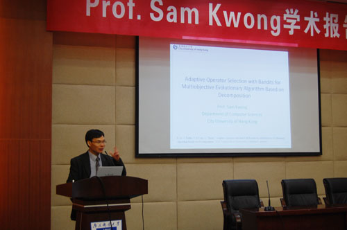 Kwong教授在报告中首先介绍了多目标优化算法的相关基本概念,然后结合在IEEE Transactions on Evolutionary Computation 2012年发表的论文,重点介绍了他所领导的课题组如何使用自适应的方法来提高多目标寻优效果的情况,最后Kwong教授详细介绍了相关最新研究工作和研究方向。报告会后,Kwong教授热情解答了老师和同学们所提出的各种问题。主讲嘉宾简介:Kwong教授现任香港城市大学计算机系主任,在德国哈根大学获得博士学位。在视频编码、优化等相关领域发表了250余篇高质量学术论文,1997年编著的“Genetic Algorithm for Control and Signal Processing”获得了Springer出版社最畅销书的荣誉。他现在担任IEEE Transactions on Industrial Informatics, IEEE Transactions on Industrial Electronics, the Journal of Information Science等多个国际知名期刊的副主编。