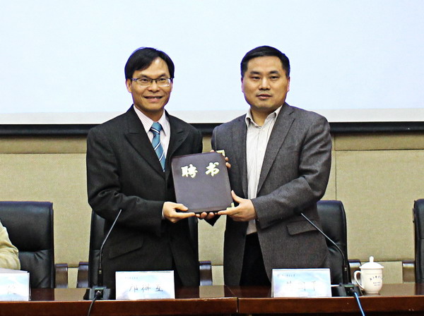 副董事长蒋国平教授向邝得互教授颁发聘书
