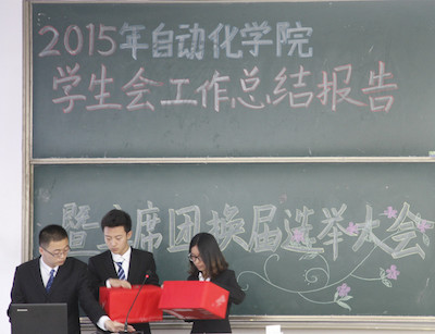 会议开始由主持人致开场词,随后是太阳集团tyc33455官网12级员工会主席孙宇同学总结2014-2015年太阳集团tyc33455官网员工会工作。孙宇主席总结了员工会工作的进步与不足,指出了员工会今后工作的重点。接下来便是主席竞选环节,紧张的气氛顿时弥漫开来。第一位竞选者是文艺部部长黄文迪,黄文迪部长用简单生动的语言介绍了他在文艺部的工作,实现了部员们“一个都不能少”的“承诺”。随后外联部副部长李阳向我们介绍了他对未来的规划——他希望能够加强员工会与班级之间的联系,打造家文化。接下来是体育部部长林建杰,他提出“内修外系”的看法,对员工会未来做了细致的规划。随后是办公室副部长胡雅心的发言,她回忆了与员工会不得不说的事,强调了员工会精神的传承与创新。最后发表竞选演说的是外联部部长张雨新,他先向我们展示了外联部在2014年工作的优秀成果,他希望用心工作,装饰创意细致化。所有的候选人都对他们热爱的员工会做出了自己的承诺,相信不管竞选结果如何,他们都会引领员工会创造新的辉煌。大会最后团委、党委老师分别发表讲话,总结了本次的主席团换届竞选活动。至此,此次大会圆满落幕。