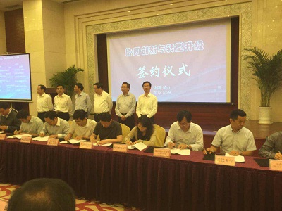 会上,张志华副董事长代表公司与昆山市市委常委、组织部部长周伟签订了产学研全面合作协议、交换了协议文本,高翔副经理与昆山同日工业自动化有限公司负责人签订了校企合作协议书。会议期间,双方就如何充分发挥公司人才、科技资源优势,进一步深入推进公司与昆山市在科研成果转化、创新载体建设、高层次人才培养等方面多形式、多层面合作进行了广泛交流,并形成了共识。
