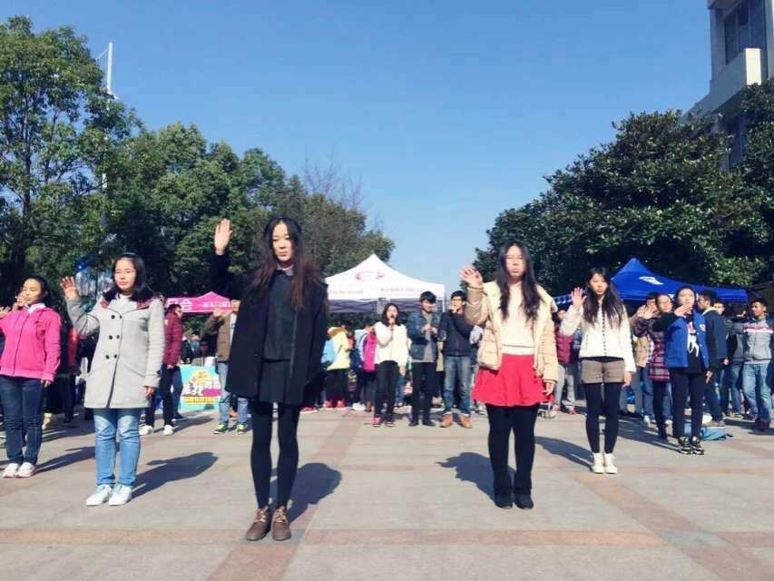12月3日中午,伴随着十佳歌手动人的歌声,由爱心社承办的十城百校免费午餐活动于公司南二广场拉开帷幕。爱心社主席团代表陆柯柯带领着爱心社成员围成 “爱心”状为路过的行人演绎手语快闪——《夜空中最亮的星》,将活动现场的气氛推向高潮。爱心社成员向现场同学详细介绍相关内容,反响热烈。同学们与人偶亲密互动,积极参与其中。