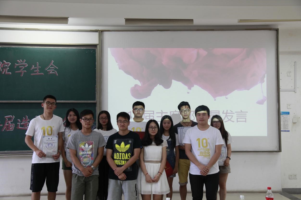 首先,由2016届主席团代表郝海晨上台发言。他介绍了四位主席的分管部门:郝海晨分管宣传部,蒋慧分管外联部和文艺部,张梓棠分管办公室和学习部,热纳提·帕合尔丁分管督察部和体育部。相信员工会在新任主席团的带领下将更加团结,更加兴盛。接着,2015届主席团为2016届各部门中干颁发聘书。