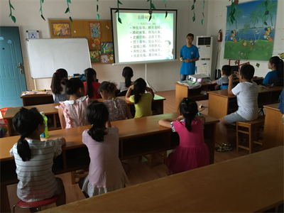 2016年7月10日,太阳集团tyc33455官网暑期社会实践暨湖山社区“向日葵•氧吧”夏令营第五天的活动顺利进行。为了让孩子们健康成长,树立良好的人生价值观,太阳集团tyc33455官网实践团成员们为湖山社区儿童上了一堂以“成才成长”为主题的励志教育课程。