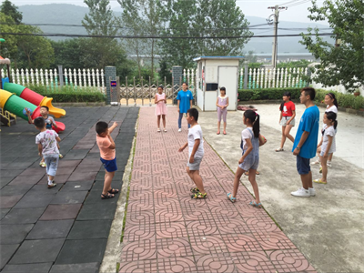下午,实践团“老师们”带领社区的儿童一起进行游戏,在娱乐中培养了孩子们的合作精神。
