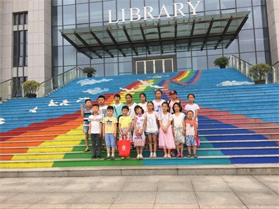 孩子们在图书馆前合影
