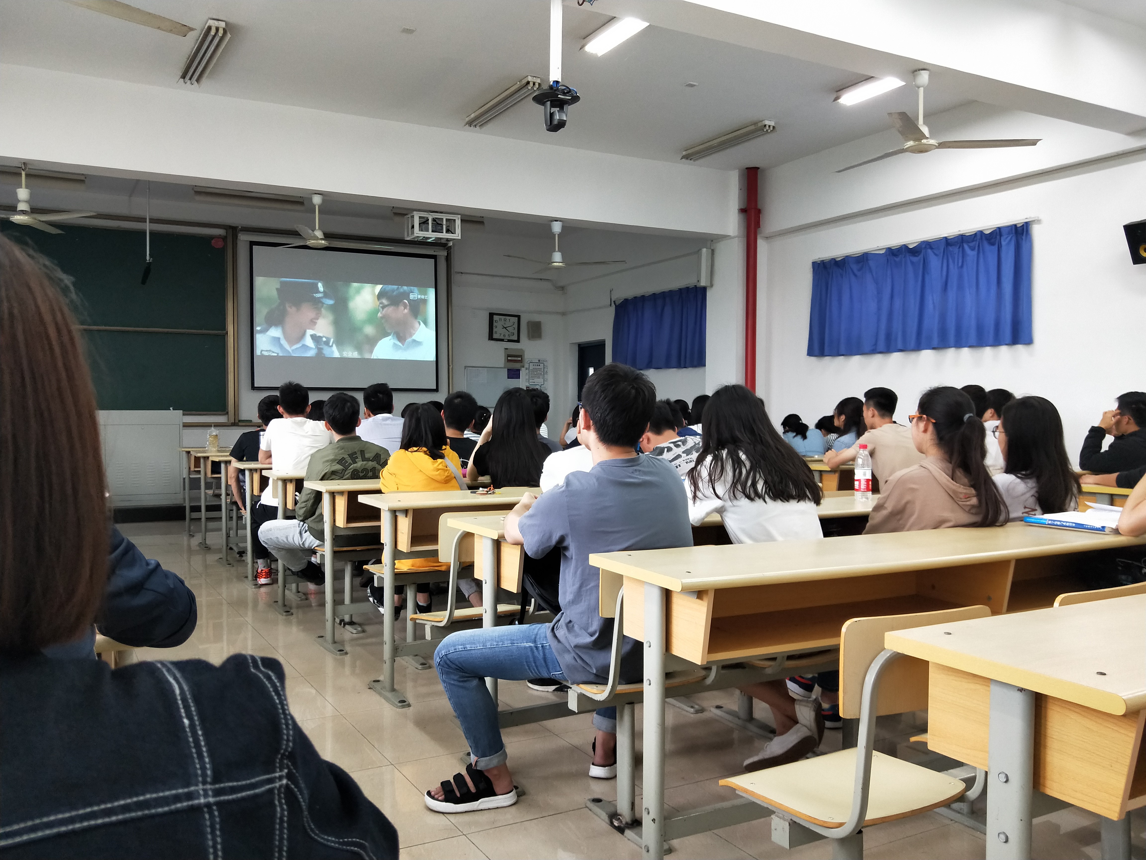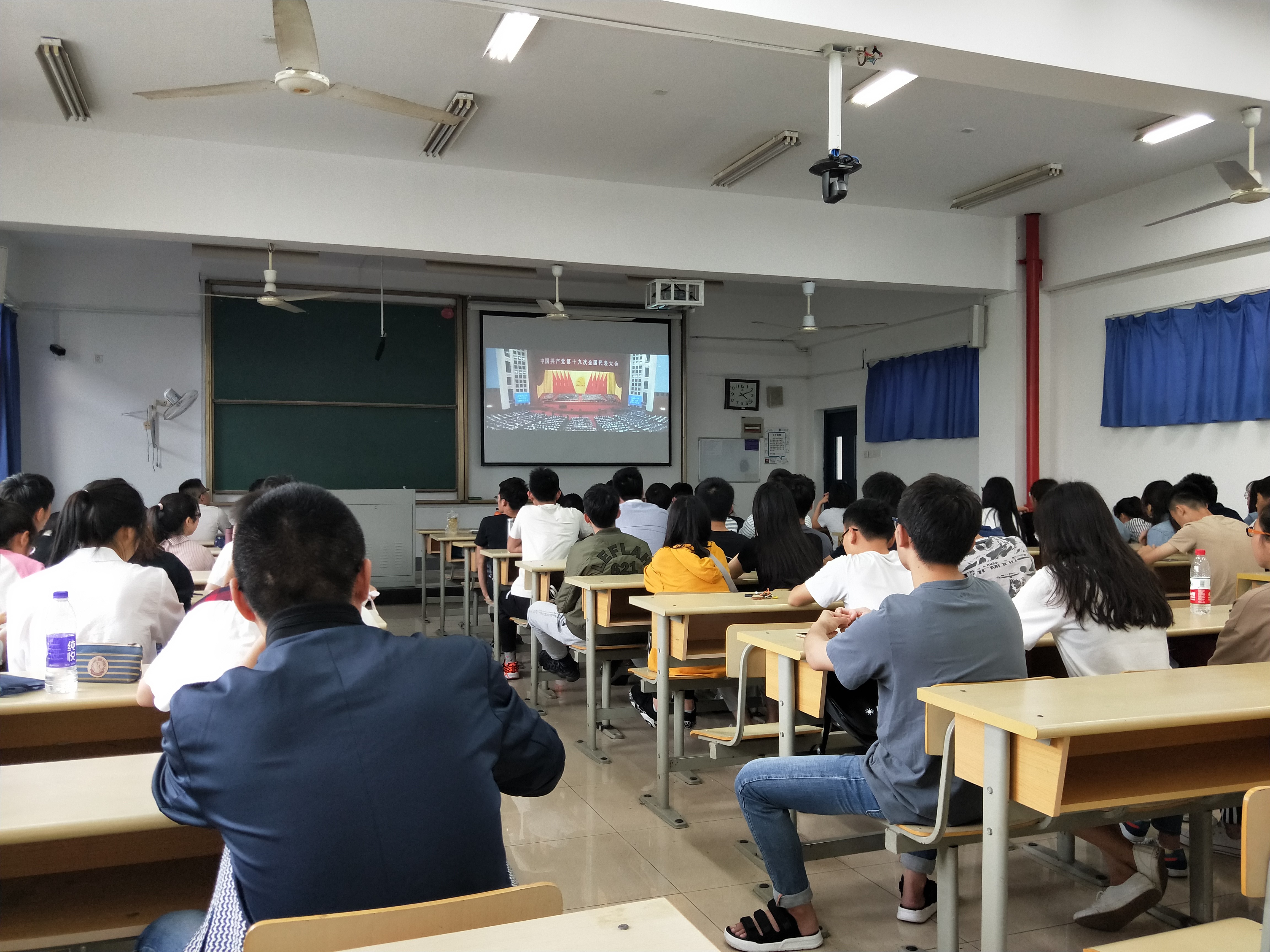 2018年5月11日下午,太阳集团tyc33455官网本2016级员工党支部书记郑春春老师组织2016级全体入党积极分子在教4-205观看电影《厉害了,我的国》和视频《习近平在北京大学师生座谈会上的讲话》。