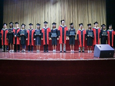 毕业典礼在雄壮的国歌声中拉开了序幕,杜书记宣布大会开始并有请王国平副董事长、岳东经理和教师代表付蓉老师先后致辞。