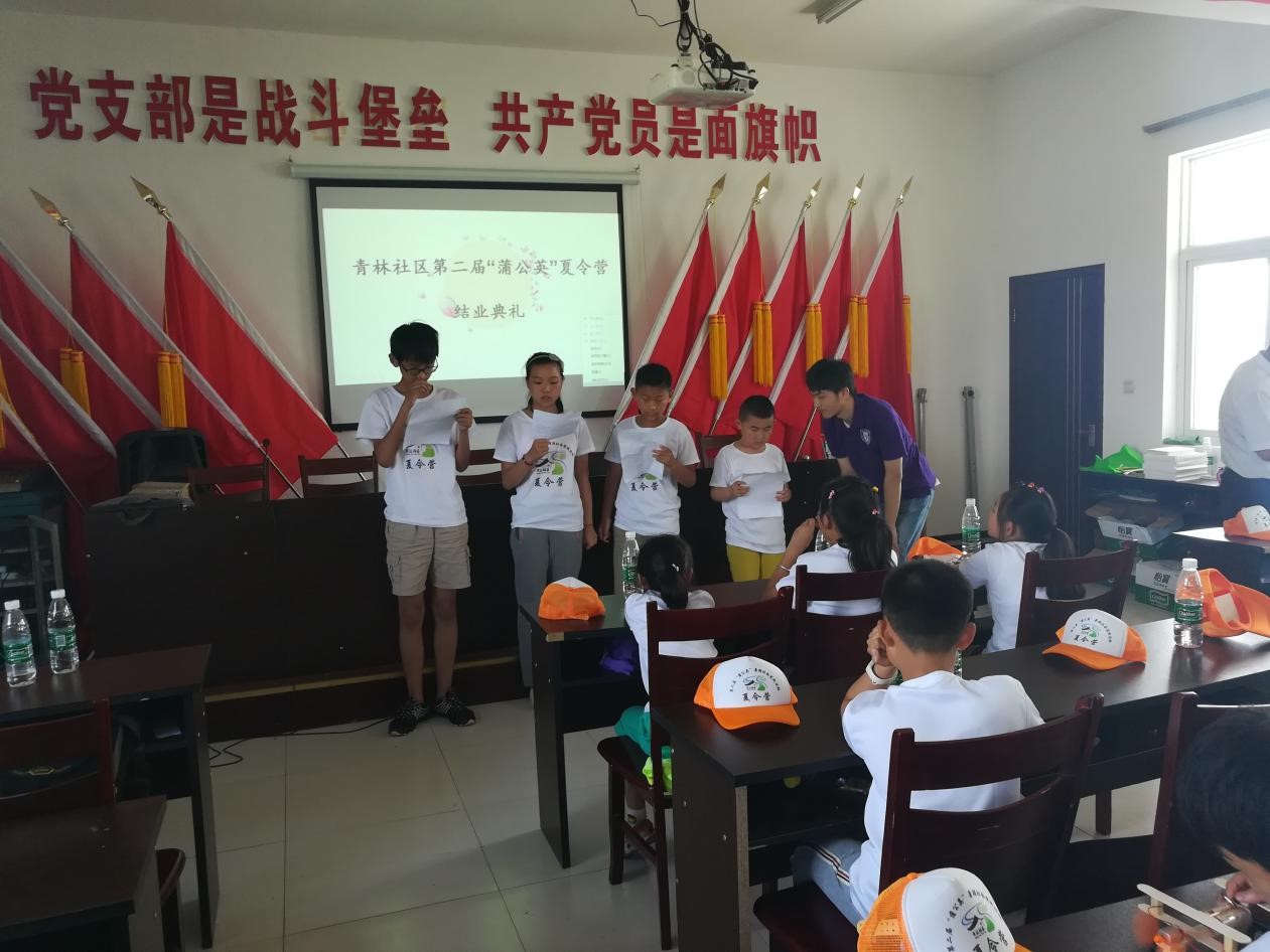下午举行了青林社区第二届“蒲公英”夏令营结业典礼,出席本次结业典礼的嘉宾有:青林社区闻相跃主任、太阳集团tyc33455官网、太阳集团tyc33455官网朱荣臻老师、郑春春老师。