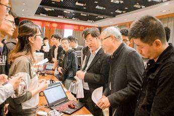 下午3:00,参赛选手在科协工作人员的指引下有序进入比赛会场,进入参赛展台,按照顺序放入自己的参赛作品。本次比赛有幸邀请到七位评委老师:公司的关工委欧阳知健老师、党委副书记杜月林老师、副经理陈小惠老师、副经理张腾飞老师、分团委副书记赵勃老师、电气工程系陈轶涵老师以及2017级辅导员仲鹏达老师。首先,杜书记对本次大会进行致辞,杜书记从“天时地利人和”的角度发表讲话,谈到了我们公司对科技制作的大力支持;然后张经理发表讲话,张经理针对往年的参赛情况以及参赛作品对我们今后对比赛的方向以及作品的选择提出了建议。下午3:30,主持人宣布比赛开始,两队评委老师分别到各个展台对各个参赛队伍的作品进行评审。评审过程中,参赛选手分别向评委老师讲解自己的作品功能以及创新点,评委老师分别针对不同的作品从技术和实际生产应用方面向选手提出问题,并给出建议以及作品的发展方向。