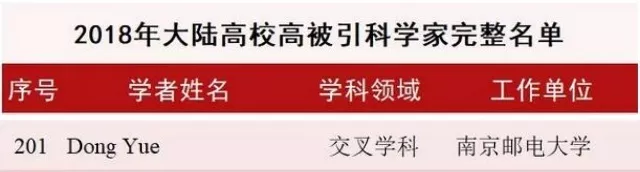 高被引科学家出炉!公司经理岳东教授为南邮唯一入选榜单的杰出学者