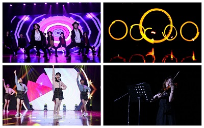 舞蹈类节目有2015级辅导员马骋老师、2018级辅导员张逗老师和公司研究生同学们带来的热辣潇洒的合舞《Black》;2018级智电专业同学编排的动感酷炫的荧光舞《光影青春》;大一大二同学组合带来的清新甜美的舞蹈《我的未来有点甜》;2018级辅导员缪甜佳老师和大一女生们带来的轻盈温婉的《茉莉花》,尽管风格不同,但他们的每一个舞步、动作都牵动着全场观众的心神。