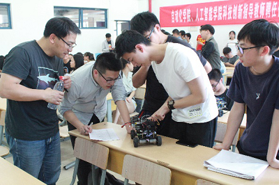 聘任仪式结束后,第十届繁星杯课外科技作品设计大赛测评正式开始,评委老师认真聆听了各组参赛队员的现场解说,并观看了作品的功能演示,悉心点评指导了每个小组。评选出一等奖何津玮等2组,二等奖何少鹏等4组,三等奖周鸿敏等6组。