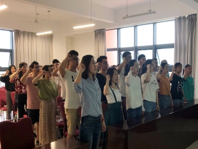 2019年6月18日,2019届毕业生党员在学科楼319会议室开展毕业生党员再教育活动。出席本次会议的人员有2015级员工党支部书记马骋老师以及支部全体员工党员。本次会议分为三个部分:重温入党誓词、文明离校动员以及预备党员转正会议。