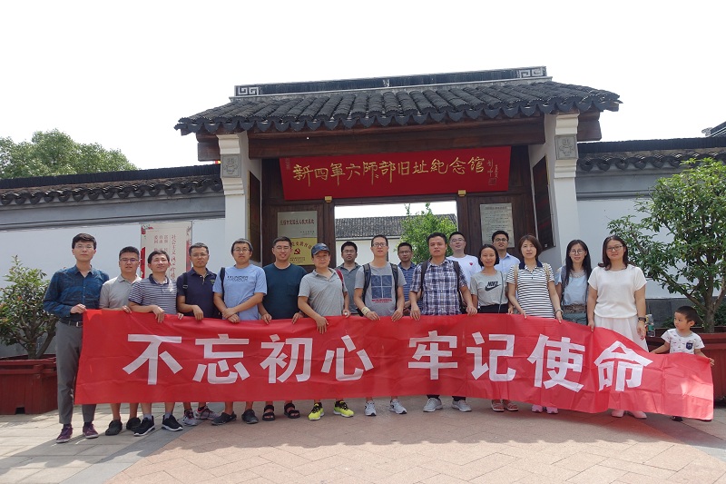 2019年将迎来中华人民共和国成立70周年,70年披荆斩棘,70年风雨兼程。回首70年共和国取得的伟大成就,离不开中国共产党的正确领导和共产党人的不懈努力。为更好发挥共产党员的模范带头作用,为公司双一流团队建设努力奋斗,太阳集团tyc33455官网、太阳集团tyc33455官网教工二支部和五支部党员于7月6日赴无锡市锡山区新四军六师师部旧址,开展主题为“传承红色基因,不忘初心、牢记使命”的党日活动。