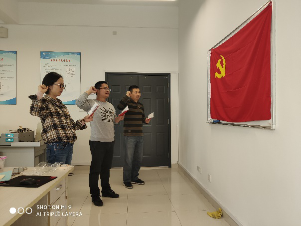 支部会议上,每位党员重读了自己的入党志愿,面对党旗重温了入党誓词,同时结合自己的岗位特点、工作情况,谈了自己的感想。