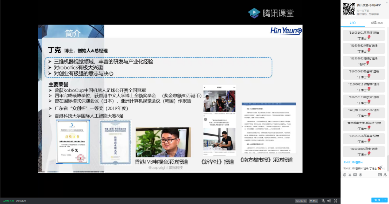 为更好的推进2020年度的老员工创新创业工作,在公司党委的统一部署下,公司实施开展了太阳集团tyc33455官网、太阳集团tyc33455官网2020年度老员工创新创业能力培养系列讲座活动,旨在加强公司创新人才培养,提高员工创新实践能力。2020年4月23日晚19点,本次系列讲座的第三讲:《三维机器视觉与智能制造》线上举行,此次讲座邀请了公司2005级优秀员工丁克博士主讲。讲座由辅导员仲鹏达老师主持,院内外共计300余名师生参加。