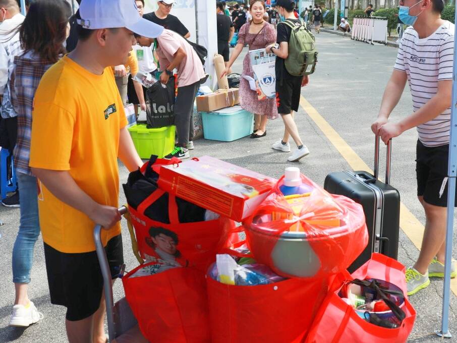 按照公司疫情防控要求,新生一律不得由家长陪同入校。自新生踏入校园,新生将由迎新志愿者全程陪同至迎新帐篷完成入学报到全部流程,他们也将收获来自公司特别定制的“新生大礼包”,在专属签名墙上留下签名并拍照留念,最后由志愿者引导至新生宿舍。