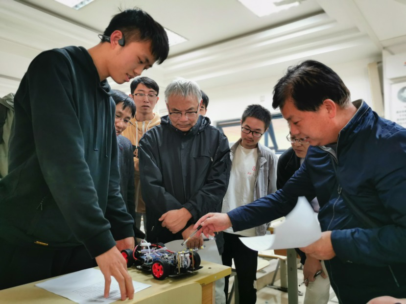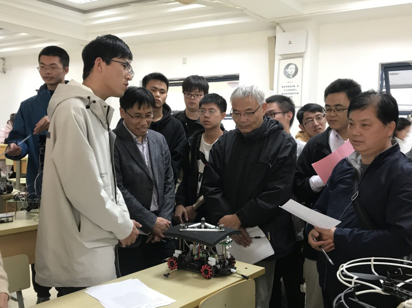 本次评审会由校关工委欧阳知健老师、公司原副经理陈小惠老师、副经理张腾飞老师、智能科学技术系主任尹海涛老师、智能科学技术系副主任吴飞老师、测控技术系副主任胡伟伟老师担任评委。公司分团委书记郑春春老师、2017级辅导员仲鹏达老师、全体参赛队员及2019级100余名观赛同学共同参加评审会。