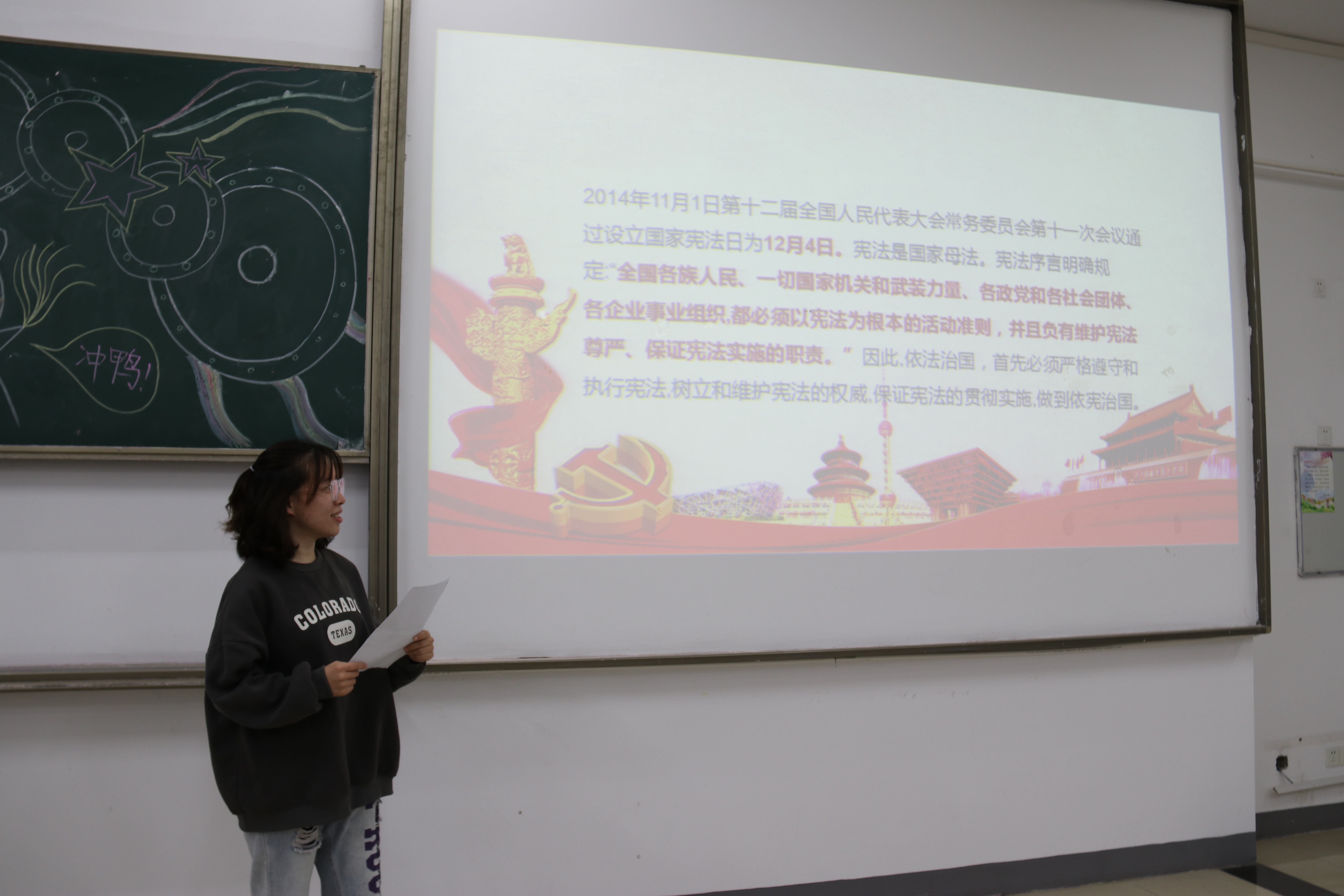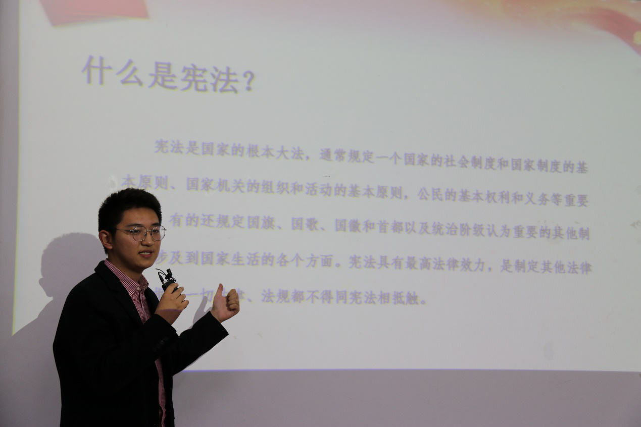 比赛开始前,院员工会主席侯雪婷进行开场演讲。她重点强调了宪法作为根本大法于国家、于社会、于个人的重要意义,以亲切有趣的口吻阐释了治国安邦总章程的独特地位和丰厚内涵。