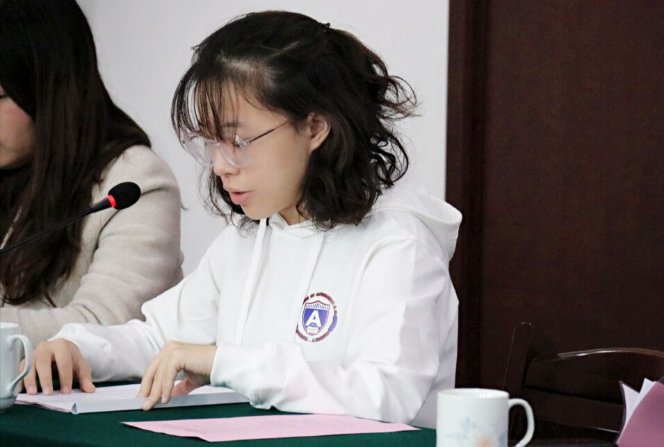 郑宁康苑社区党总支副书记郑蓓蓓发言,介绍了马群街道的地理位置、历史、人口、人员结构等基本信息,以及基层社区工作人员的日常工作,并且提出了对同学们的要求和期望,要多看多听多做。