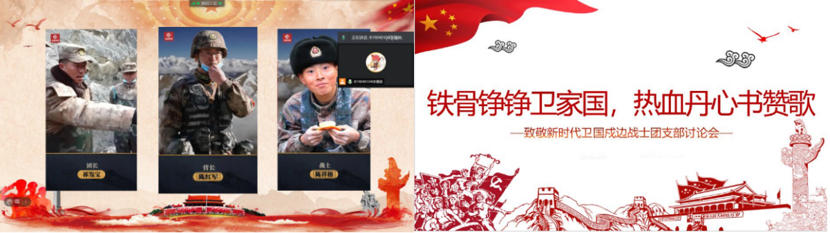 2018级团支部,以预备党员、入党积极分子为表率,积极组织发动广大团员,学习观看卫国戍边英雄事迹,谈体会,写感悟,利用线上平台广泛开展讨论交流。