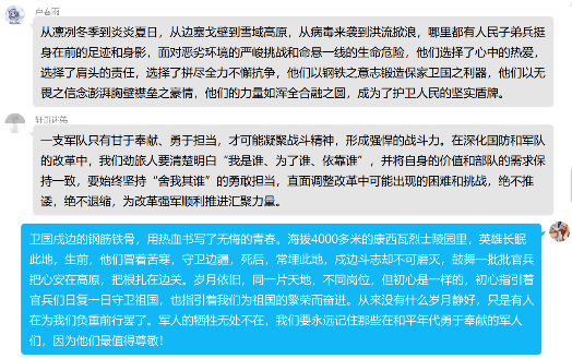 爱心社的同学们表示:“新时代卫国戍边英雄官兵,产生于斗争一线的磨砺考验,成长于奋斗强军的火热实践,献身于强国复兴的伟大征程,他们的事迹精神具有鲜明时代价值和强大感召力量。我们要向这些英雄致敬,在享受他们带来的和平生活的同时,努力学习,奉献社会,为祖国的建设添砖加瓦,用自己的专业知识和奉献精神为自己赢取真正的和平!”