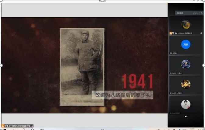2019级测控专业的三个支部通过观看视频,走入秦老的一生。秦老曾在《开学第一课》上寄语青年学子“百折不挠学本领,坚定不移跟党走。”秦老作为一名老红军、老党员,他始终坚持着“舍小家,为大家”的理念,一世清白,兢兢业业,将自身的发展融入国家建设之中。秦老对青年员工进行的“艰苦奋斗、革命传统”教育,为青年员工们打下了为祖国富强发展而勤奋学习科学文化知识的思想基础,为祖国建设培养了一大批优秀人才。秦华礼老前辈用自己的事迹告诉了每一个南邮学子,什么才是对祖国的热爱。