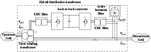 所设计的固态变压器简图如下,相对于传统变压器多了旁路线圈,主要用于实现无功补偿、调压、滤波这三个功能。