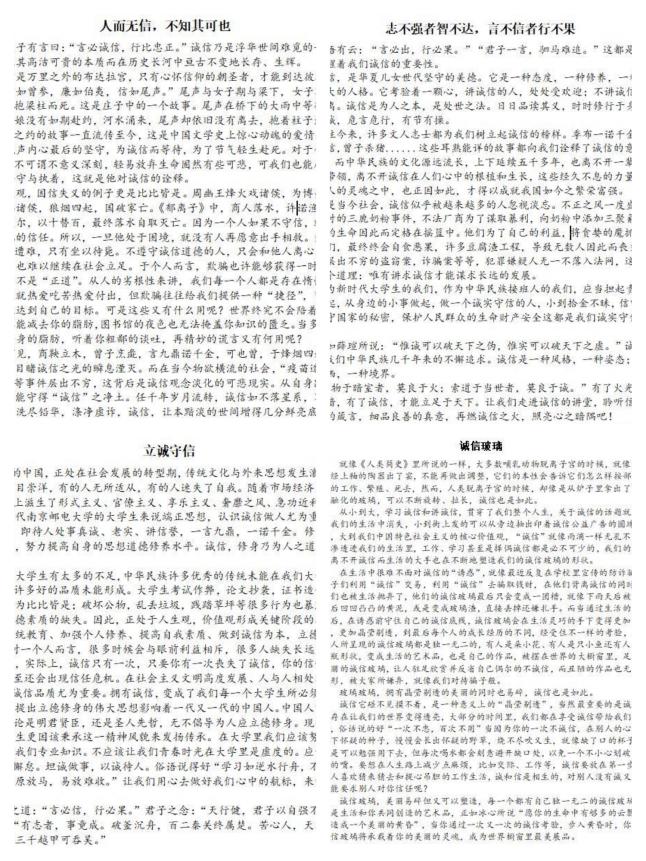 本次大会不仅让同学们认识了诚信的作用,也提高了大家对诚信的更深层次的理解。大家积极发言,从各个方面谈论了诚信,在慢慢汲取其他同学对诚信的理解时,大家开始深思自己的一举一动。