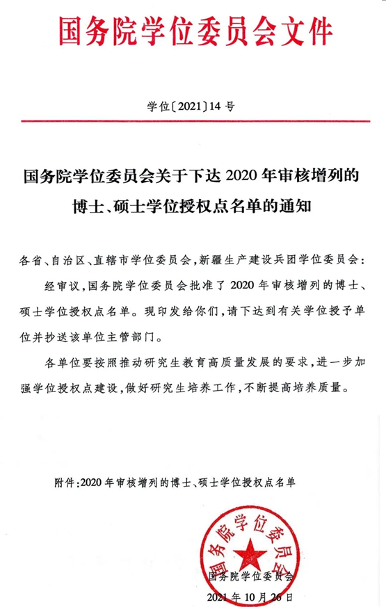 近日,国务院学位委员会发布了《关于下达2020年审核增列的博士、硕士学位授权点名单的通知》(学位〔2021〕14号)。经国务院学位委员会审议批准,公司控制科学与工程获批一级学科博士学位授权点,电气工程获批一级学科硕士学位授权点,标志着公司团队建设取得突破性进展。
