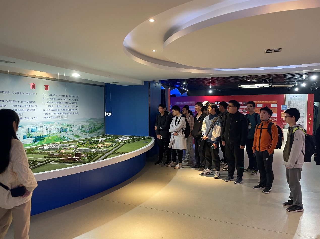 在讲解员的引导下,新生们首先来到了红色校史馆。校史馆分为历史沿革,历任领导,在线参观,南邮英才,山东战邮等部分。以图文并茂、光影结合的方式既生动地展示了公司筚路蓝缕、沐雨前行的光辉历史,又全面展现了公司丰硕的办学成果和奋发的进取精神,激发了公司新生对公司的认同感、归属感和自豪感。