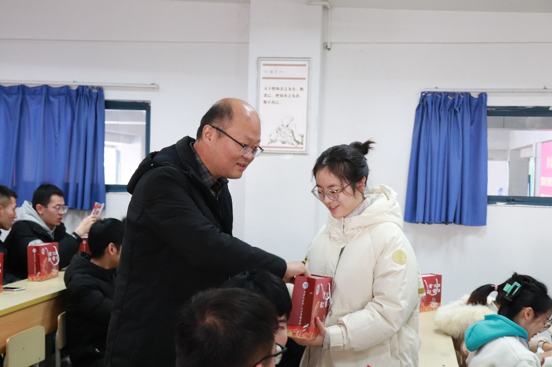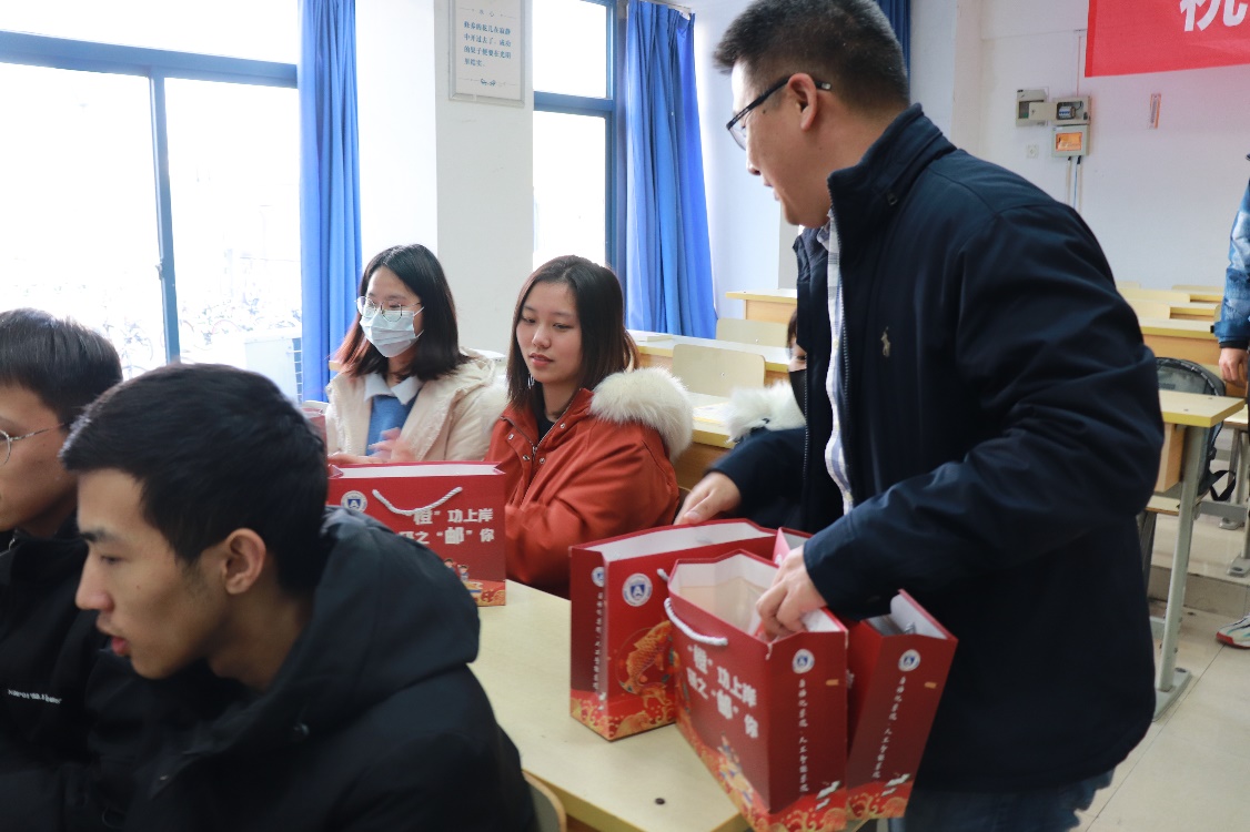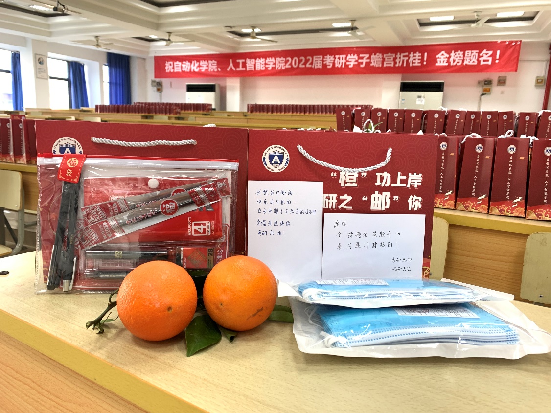 活动现场,全体领导和辅导员为同学们发放慰问品。慰问品包括考研文具、防疫物资、手写贺卡以及一颗橙子,寓意考研学子心想事“橙”!“橙”功上岸!