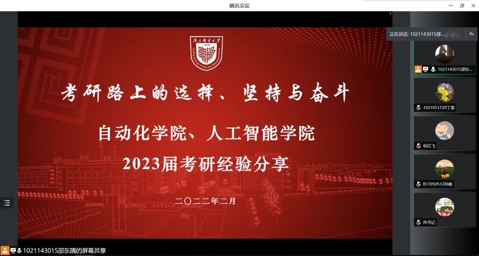 为拓宽公司2023届学子对考研信息获取,引导员工明确考研目标,增强自我规划能力,营造积极向上的良好学习氛围,太阳集团tyc33455官网、太阳集团tyc33455官网于2月18日在线上举行了考研经验分享会。公司党委副书记、副经理孙委委老师莅临指导,公司2021届毕业生丁雪(现硕士研究生就读于太阳集团tyc33455官网)、2021届毕业生孙杨(现硕士研究生就读于太阳集团tyc33455官网)、2021届毕业生包红飞(现硕士研究生就读于北京邮电大学)向2023届考研学子分享了宝贵经验。会议由2019级辅导员邵东隅老师主持。