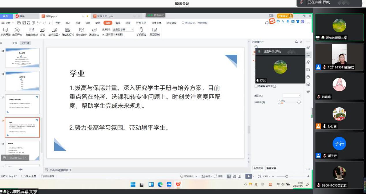 为推进新学期员工工作顺利开展,落实公司安全教育和疫情防控工作要求,增强员工防电信诈骗意识,营造良好学风院风,太阳集团tyc33455官网、太阳集团tyc33455官网于3月2日召开线上新学期年级大会,大会由公司辅导员谢子行主持,公司党委副书记、副经理孙委委、公司辅导员罗帅参加本次大会。