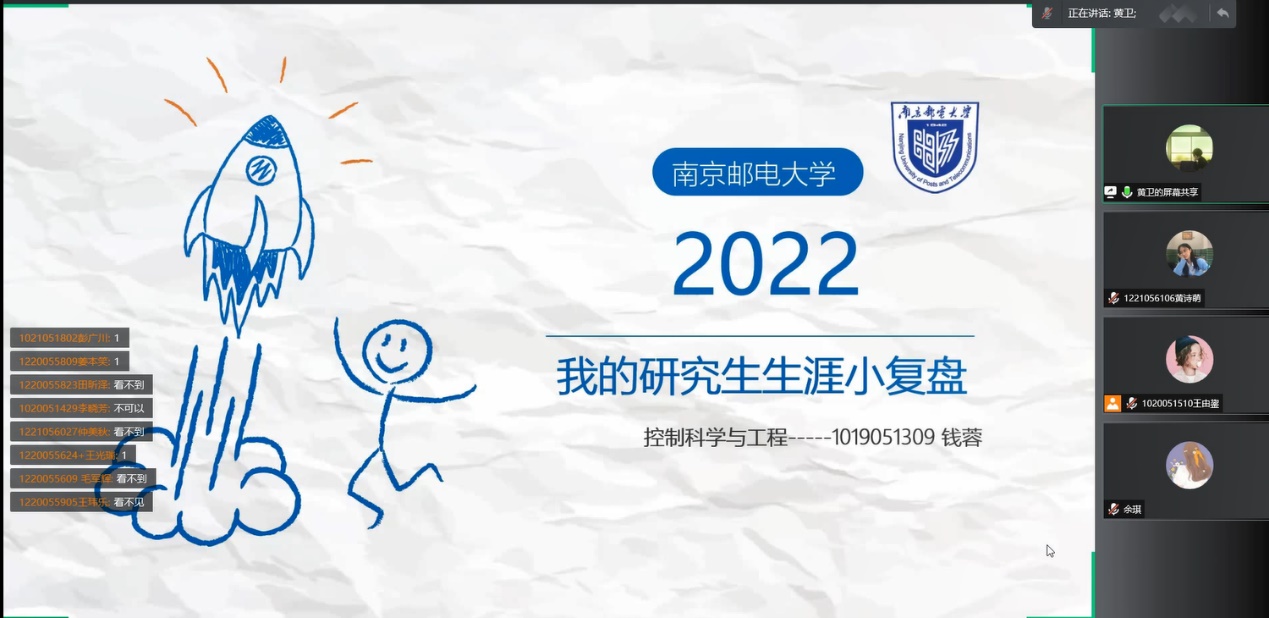 为切实帮助研一、研二全日制硕士更好地了解目前就业形势、解决就业困惑、做好职业生涯规划,太阳集团tyc33455官网、太阳集团tyc33455官网于4月13日晚19点举办了“我的青春故事”线上就业经验分享会。本次活动的主讲嘉宾为我院2022届优秀毕业研究生代表钱蓉、黄卫、陈洪凯、徐森和蔡清媛5位同学。公司党委副书记兼副经理孙委委出席了本次活动,此次活动由公司2020级研究生辅导员余琪老师主持。