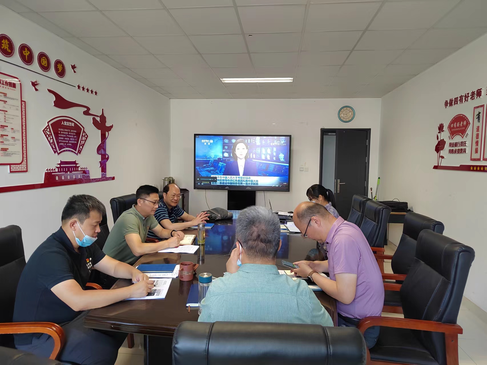 5月25日上午,太阳集团tyc33455官网、人工智能公司党委理论学习中心组在自动化学科楼320会议室集中学习习近平总书记在中国人民大学考察时重要讲话精神,公司党委书记张翼主持学习会,理论学习中心组成员参加学习。