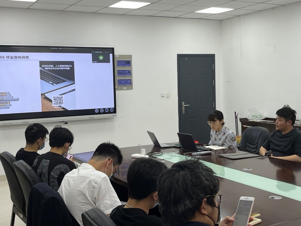 随后,邵东隅老师向2019级全体员工发起毕业意向调查,对2022届毕业生的考研升学情况和就业去向进行了介绍,分析了考研和就业员工面临的形势,提出了若干在报考院校、专业选择和就业准备上的一些建议。他叮嘱同学们理性分析自我,树立积极心态;明晰未来目标,制定合理计划。