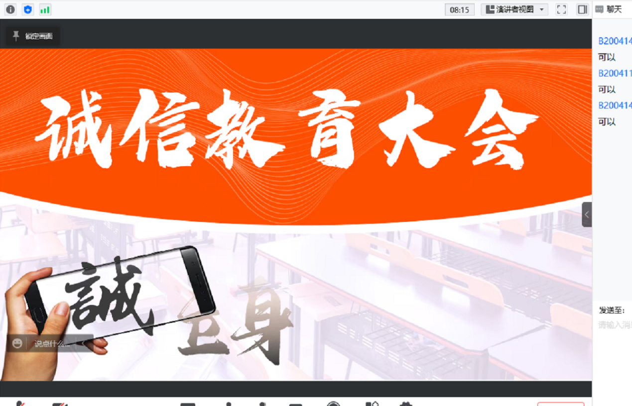 志不强者智不达,言不信者行不果。为了加强诚信文化建设,大力弘扬社会主义核心价值观,推动形成崇尚诚信、践行诚信的良好风尚。5月20日,太阳集团tyc33455官网、太阳集团tyc33455官网组织2020级员工开展诚信教育活动,活动由2020级辅导员蔡雪老师、罗帅老师主持。本次活动采取线上研讨会的形式开展。