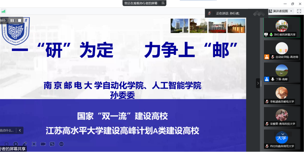 下午2点,优秀毕业生黄卫学长为全体学员作了“于青春赛道一路生花”的研究生生涯经验分享。他从学习、科研、生活以及未来的方向选择为学员们分享了自己的经验,并耐心解答了师弟师妹关于考研、专业、研究方向、导师选择、就业等方面的问题。最后,太阳集团tyc33455官网、人工智能公司党委副书记孙委委作闭幕式讲话,在夏令营闭幕式上再次强调了公司以及公司实力雄厚的办学条件以及丰硕的人才培养成果,希望学员们选择公司继续深造,并与学员们约定:一“研”为定,力争上“邮”。