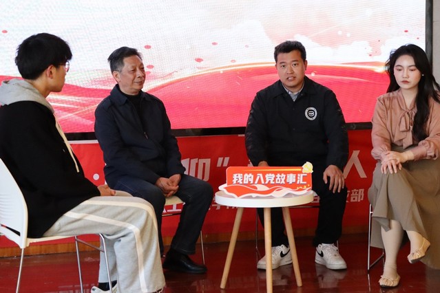 最后一项议程,主持人邀请孙委委、孔宪禹、齐沁儿三位党员老师上台,开展“我的入党故事汇”。以访谈的形式,主持人依次向三位老师提问,老师们倾心分享自己的入党经历,并结合时局与专业方向,在思想和行动上为同学们指点迷津,给众团员明确了正确的党团观念、党团信仰——“珠峰虽高而登其巅,大海虽深而遨其底”,老师们强调,同学们应勇于承担起传承者、践行者、引领者的责任,无惧艰难险阻,无畏惊涛骇浪,心向党团,砥砺前行,不负韶华,不负青春。语毕,同学们豪迈的思绪骋怀,纷纷献出热烈的掌声。