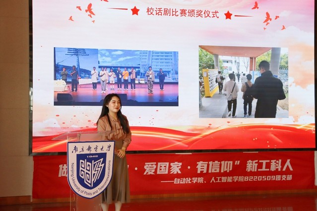 随后,主持人带领同学们回顾“寻迹雨花、追思先烈”清明纪念暨红色实景户外体验活动与“行走南京、表白中国”三行情诗撰写活动。结合着荧幕上闪动的活动影片,主持人秦瑞同学为我们详细总结了活动议程。细数着历史,回味着诗篇,大家感触颇深,台下掌声连连。